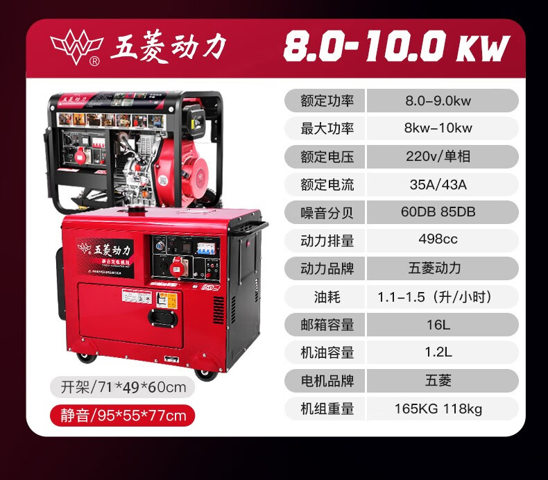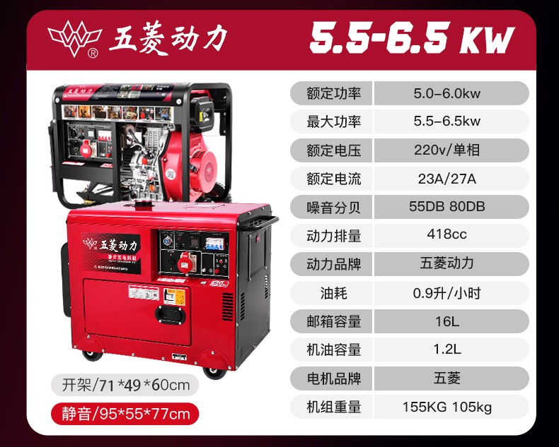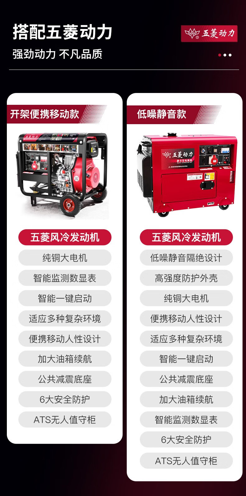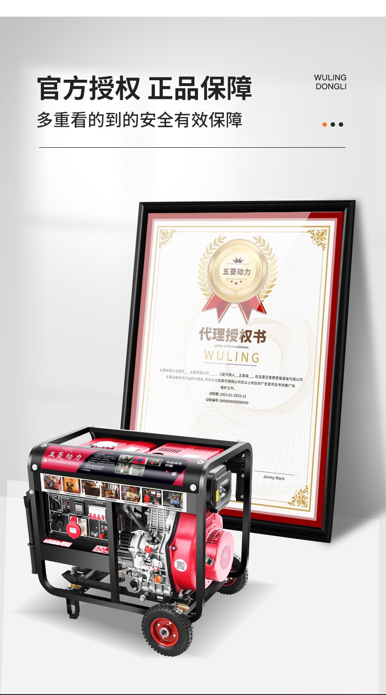 五菱动力5/6/8/10KW千瓦小型家用低噪音柴油发电机组220V单三相380V等功率全铜发电机 预付定金(付完尾款发货) 发电机:220v