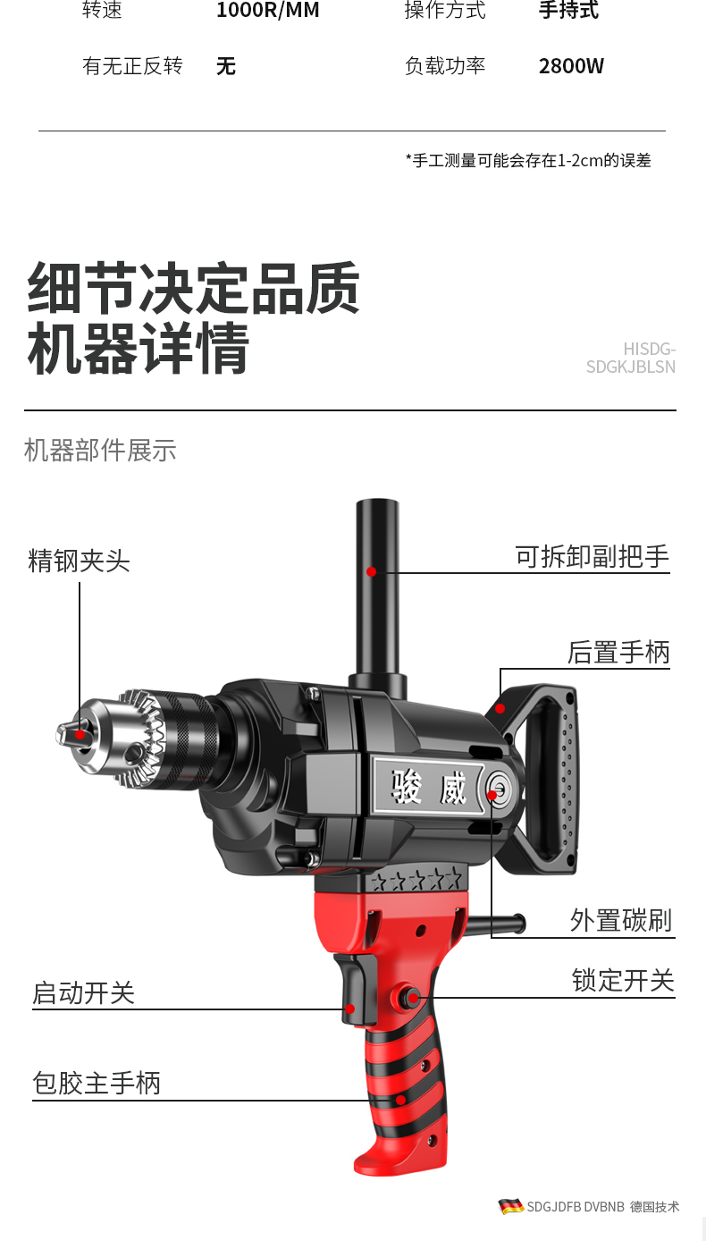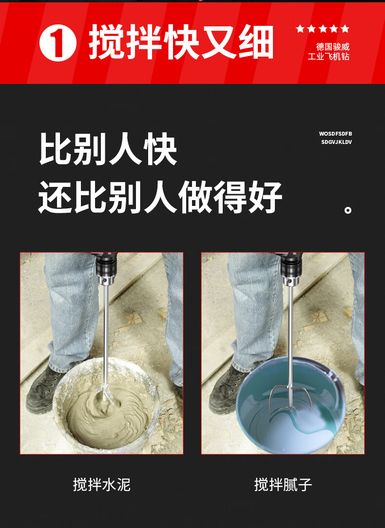 德国骏威(JUNWE)工业级飞机钻大功率搅拌机电钻手钻腻子粉混凝土搅拌器油漆涂料打灰机电动工具 【中国尊享旗舰版16MM飞机钻加配豪礼】