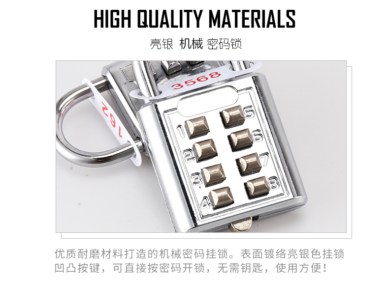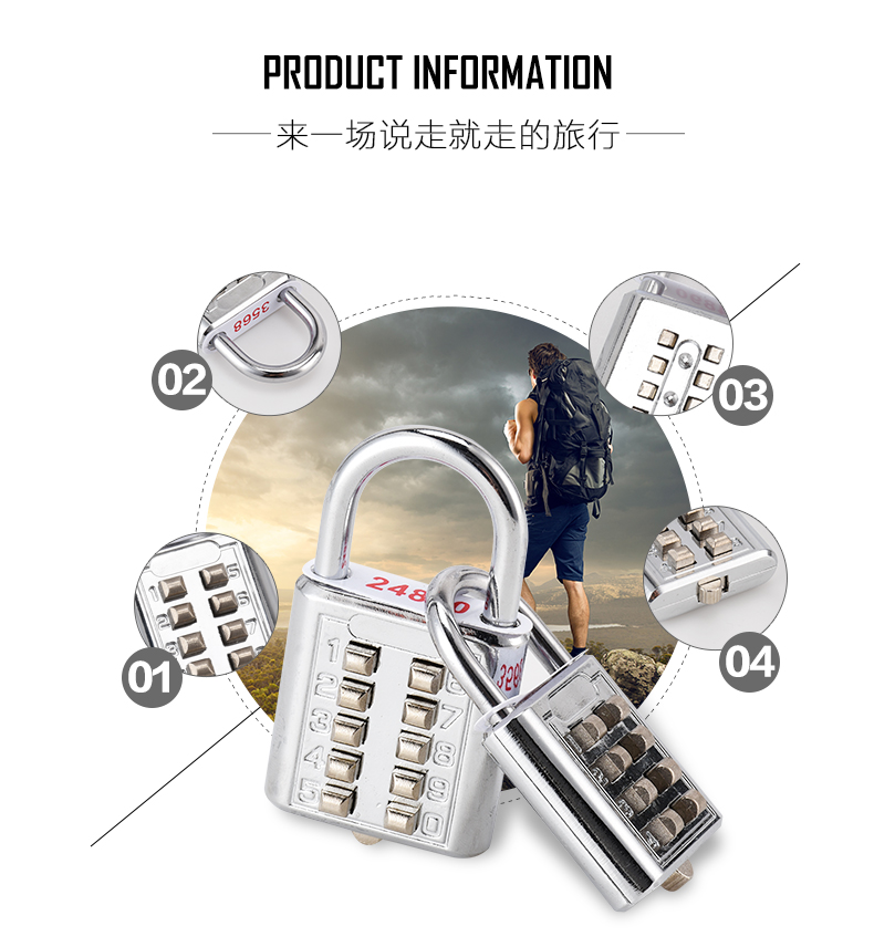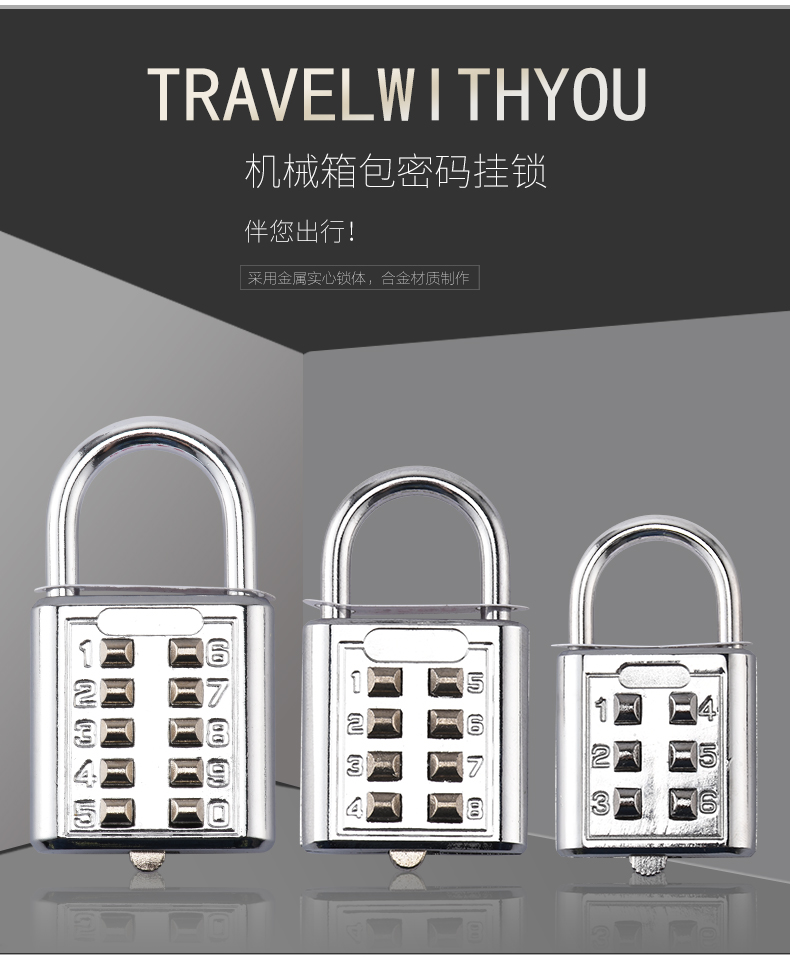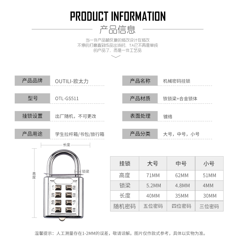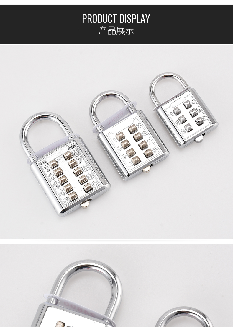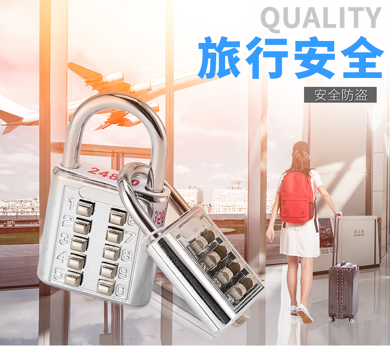 欧太力品牌 机械密码挂锁 行旅箱包锁头 健身房挂锁 金属箱包锁 密码随机配送不可修改密码 (蓝色)中号4位密码挂锁-不可改密码