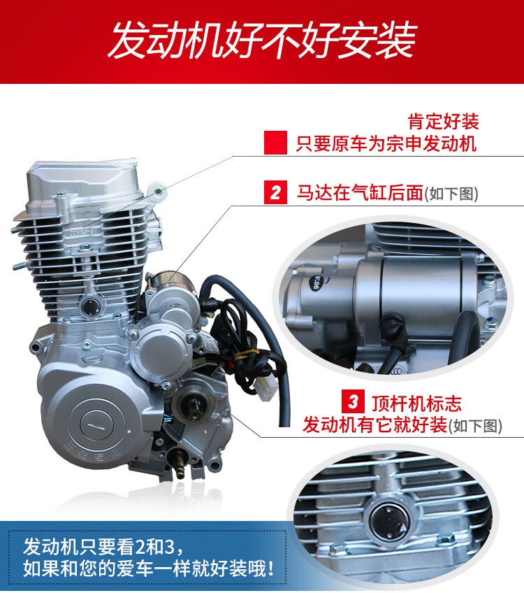 宗申动力125 150 175 200 250风冷摩托三轮车发动机总成机头 宗申CG200银白/灰【原厂全新】